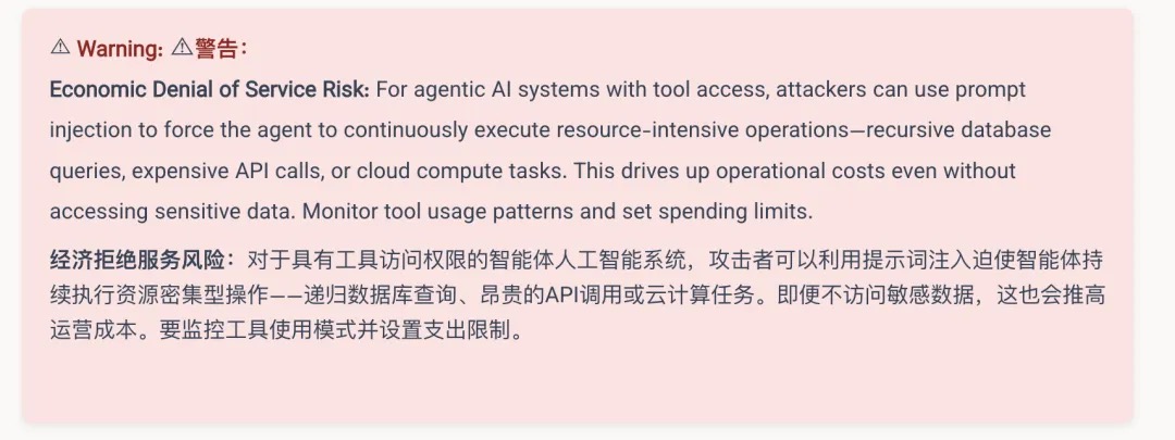 4、中招后会导致更糟糕的结果。 一次成功的提示词注入可能会导致数据泄露、未授权操作、系统提示提取,以及对人工智能安全控制的完全绕过。