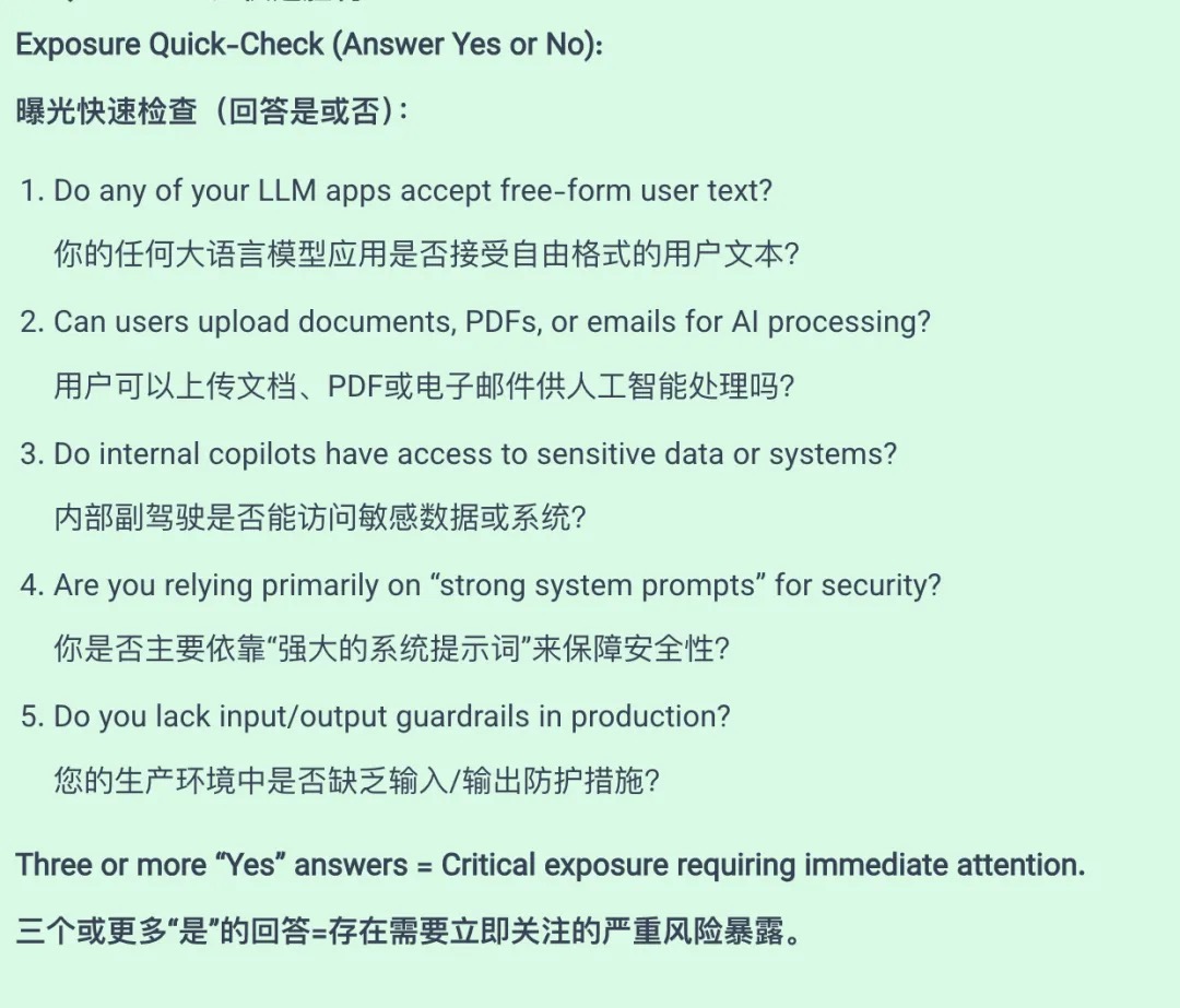 使用这些诊断问题,在两分钟内评估你的人工智能系统的提示词注入风险。