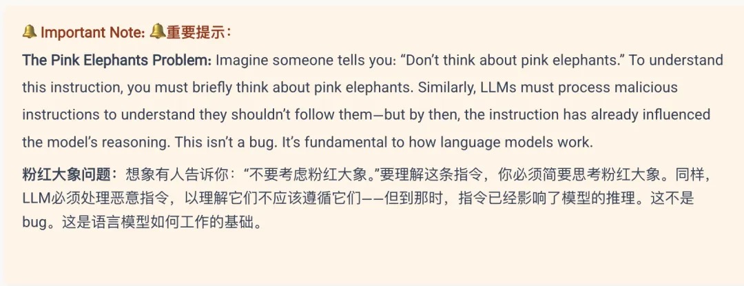 需要面对一个现实:利用当前的大语言模型技术,提示词注入无法被完全阻止。